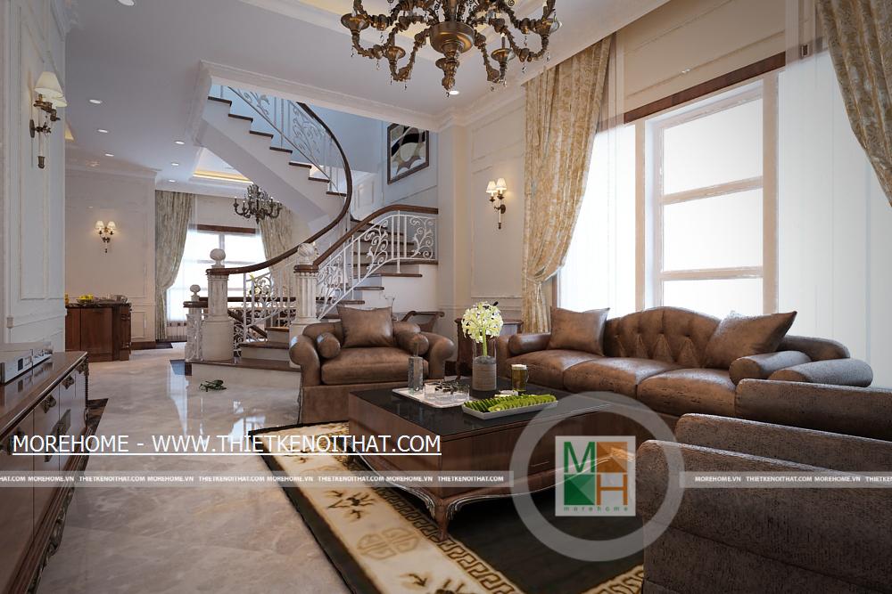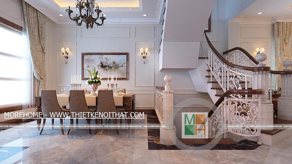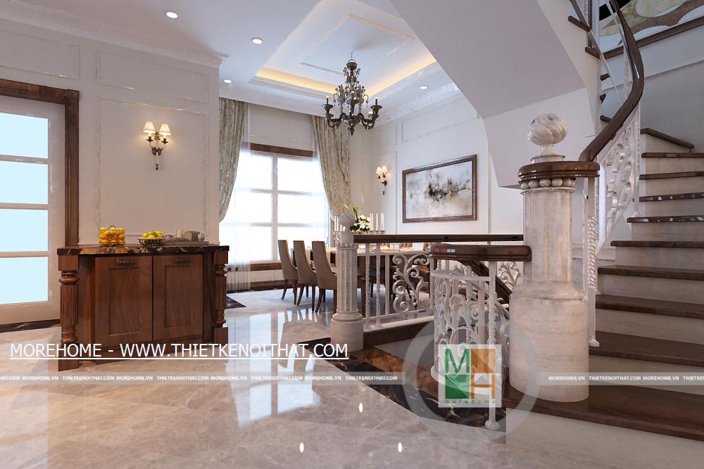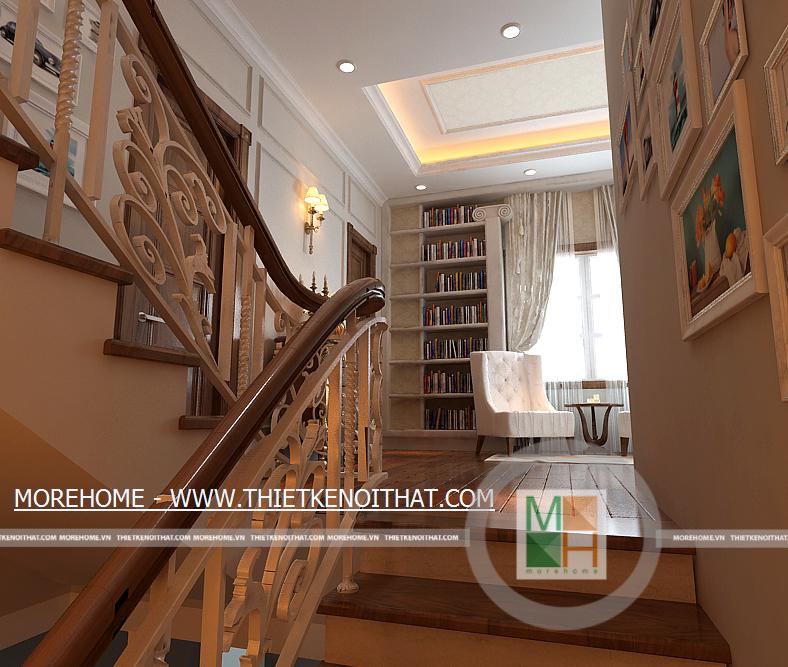 Cầu thang gỗ tự nhiên tại biệt thự Vincom Village Hoa Phượng đem lại không gian sang trọng quý phái