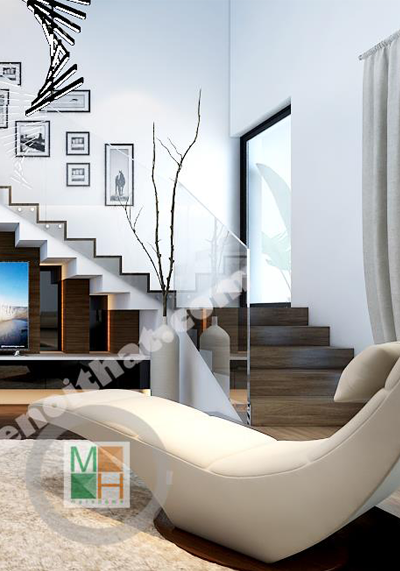 Bạn có thể gam màu chủ đạo của không gian sử dụng gam màu gỗ mun cùng độ sáng bóng cao cấp của sàn gỗ công nghiệp cao cấp tạo nên sự đồng bộ cho không gian nội thất của căn biệt thự. Bên cạnh đó kiến trúc sư cũng hết sức khéo léo khi chọn vị trí đặt cầu thang.