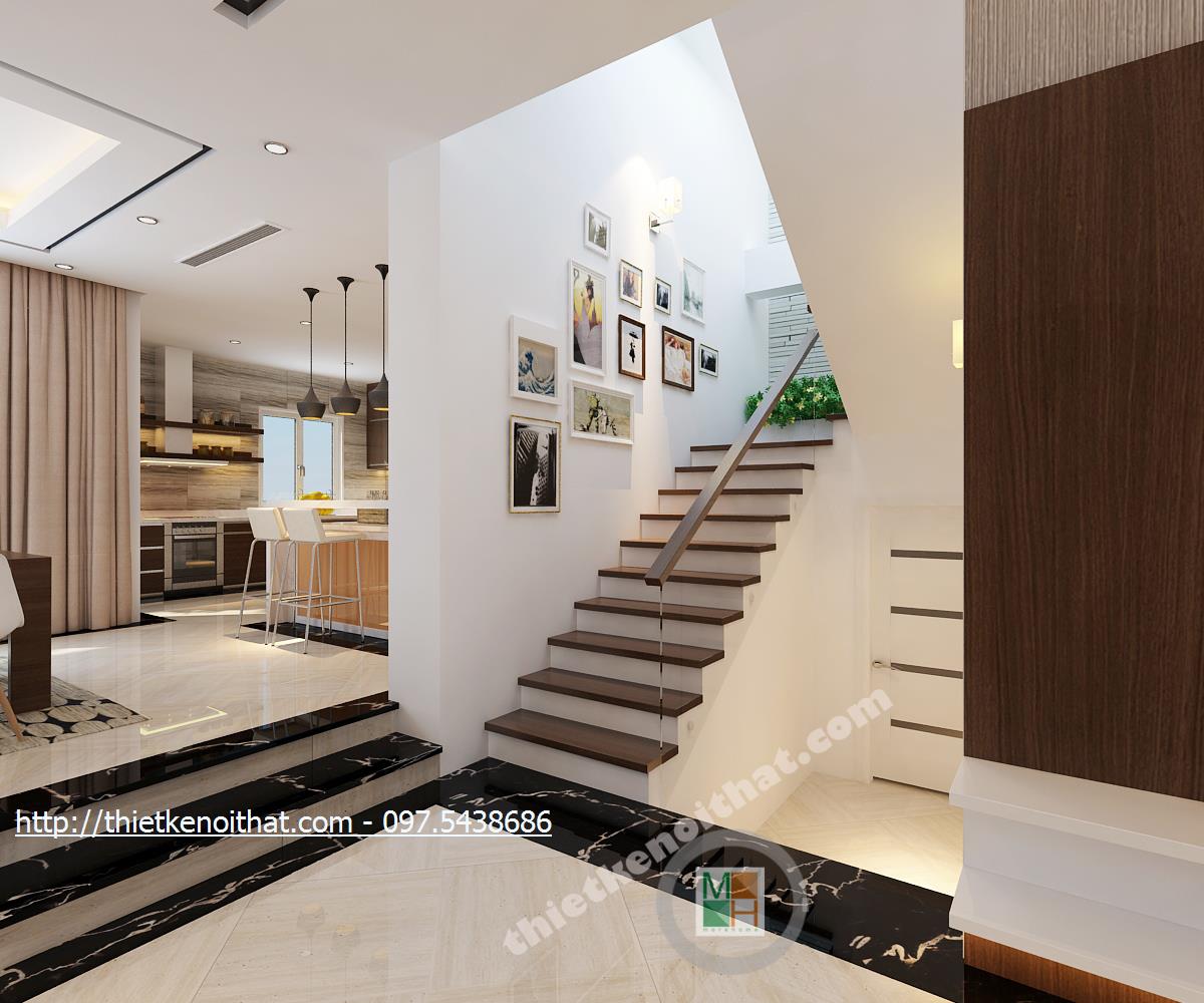 Lợi thế của Cầu thang gỗ thẳng trong biệt thự Huyndai Anh Hà: