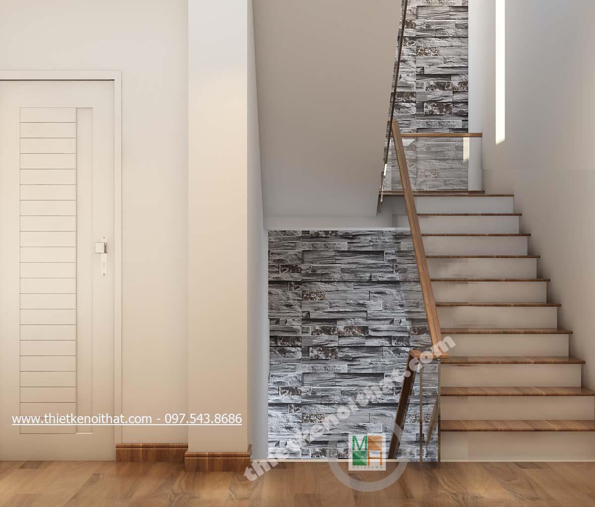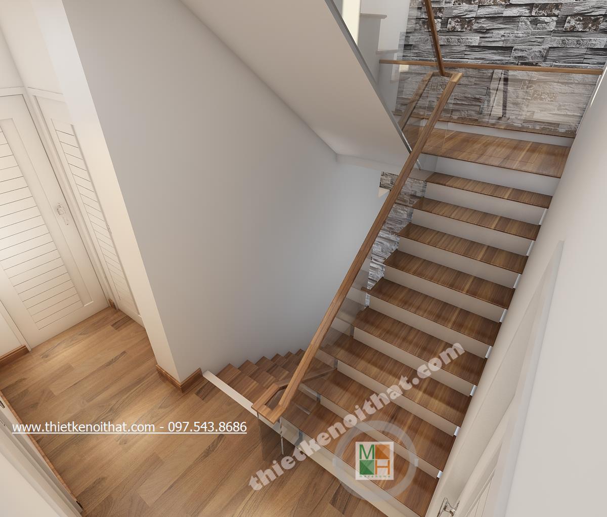 Lợi thế của Cầu thang gỗ thẳng trong biệt thự Huyndai HillState chị Loan: