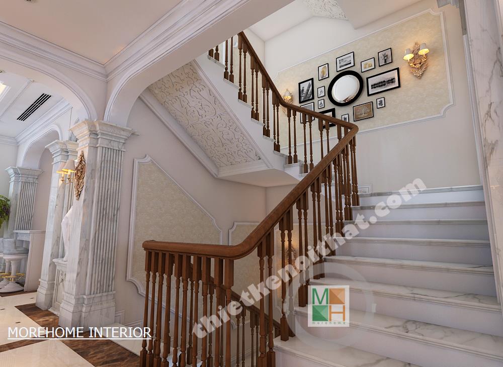 Cầu thang gỗ biệt thự Quảng Ninh