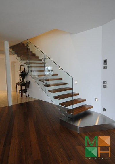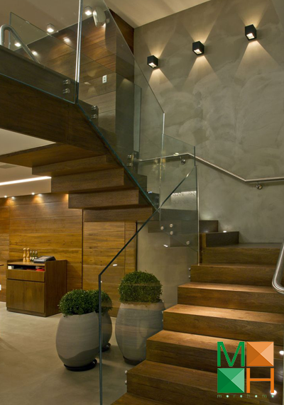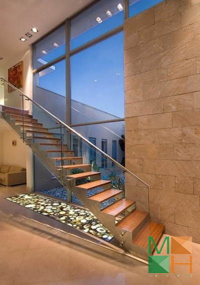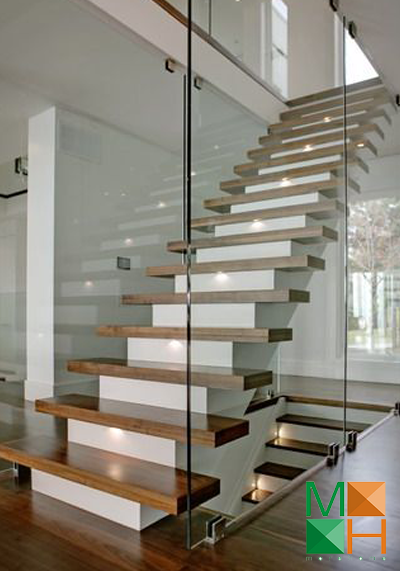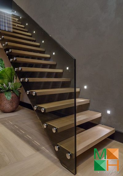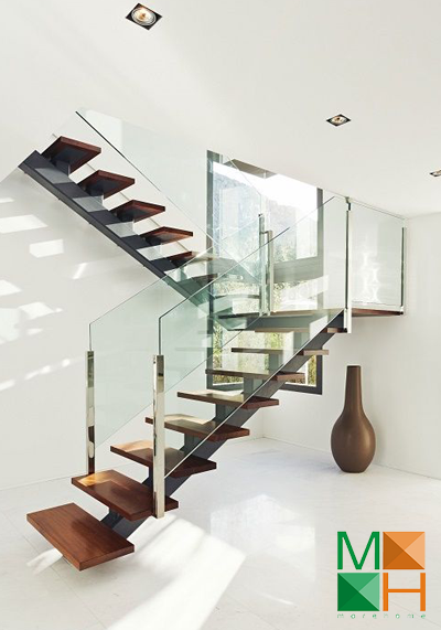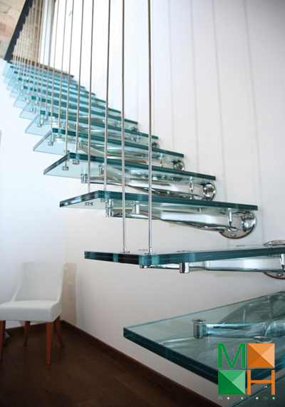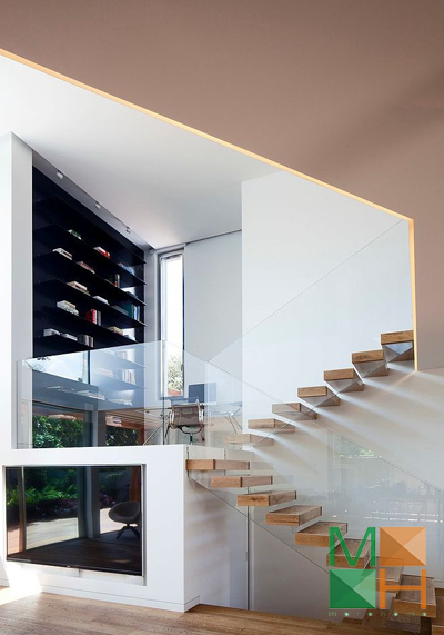 Cầu thang kính hoặc cầu thang gỗ lan can kính là một lựa chọn hoàn hảo cho những ngôi nhà có không gian nhỏ. Thay vì chất liệu gỗ hoặc inox thi dùng lan can cầu thang bằng kính căn hộ của bạn trông thông thoáng và rộng hơn. Không gian sử dụng không bị chia cắt mà vẫn đảm bảo tính an toàn tuyệt đối cho người sử dụng.