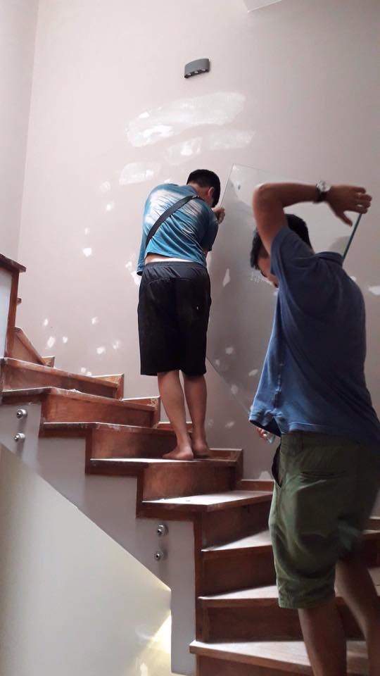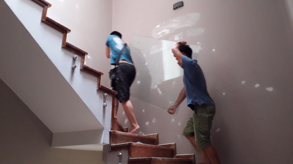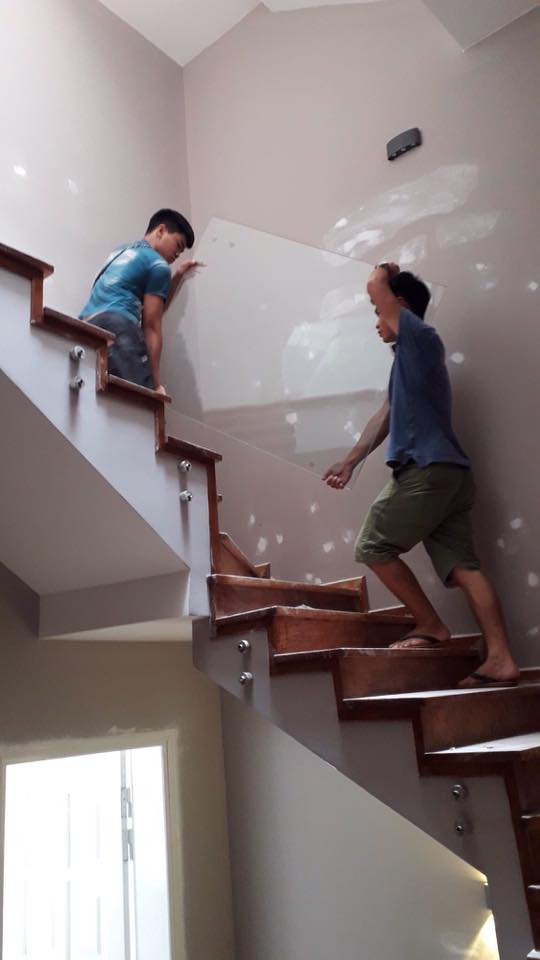 Ở đây là công trình lắp đặt lan can kính cường lực cho cầu thang tại Thanh Lương - Hà Nội.