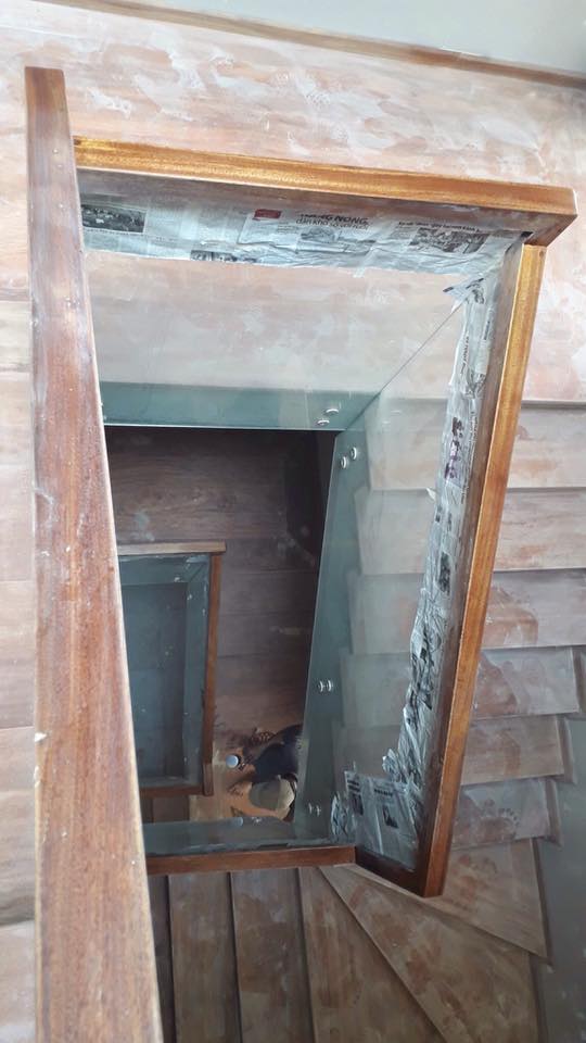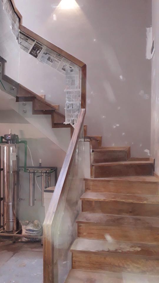 cầu thang gỗ lan can kính , lan can kính tay vịn gỗ , cầu thang gỗ , đệm bậc cầu thang gỗ , tay vịn cầu thang gỗ lim nam phi , cầu thang gỗ lim nam phi