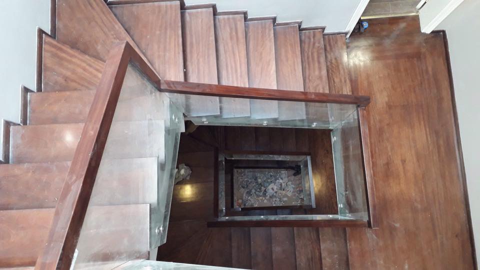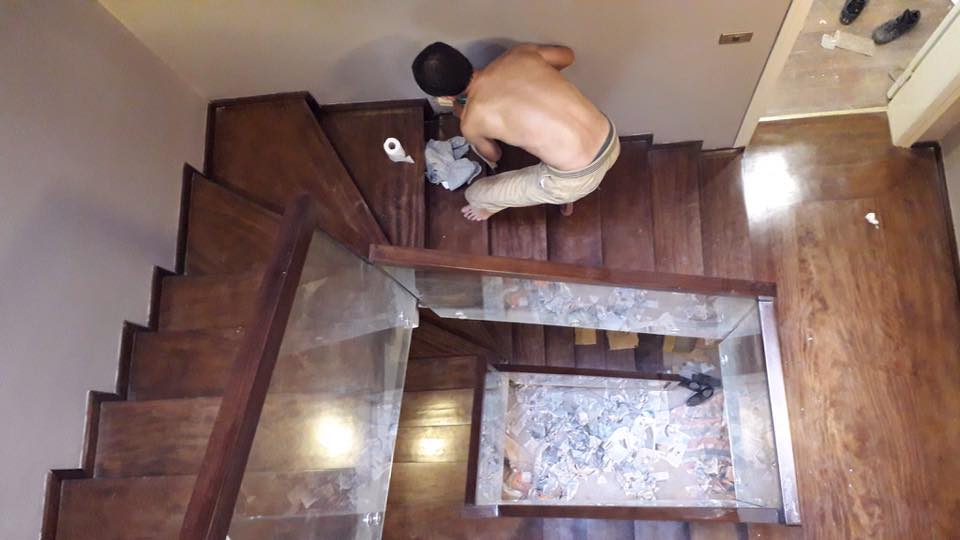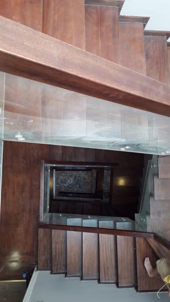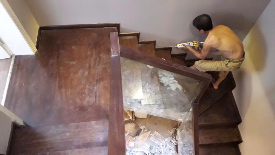 Thi công cầu thang gỗ có nhiều công đoạn khác nhau. Dưới đây là hình ảnh nhân công MoreHome thi công hoàn thiện cầu thang gỗ kính nhà phố ở Hà Nội