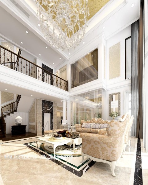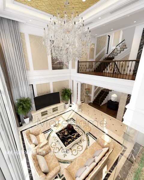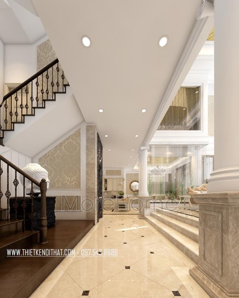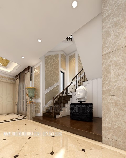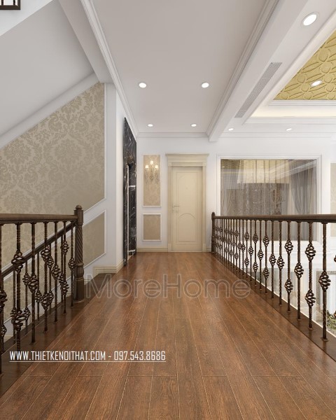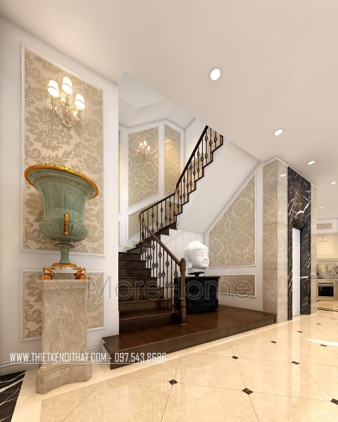 Cầu thang gỗ sắt tại biệt thự tân cổ điển - Quảng Ninh