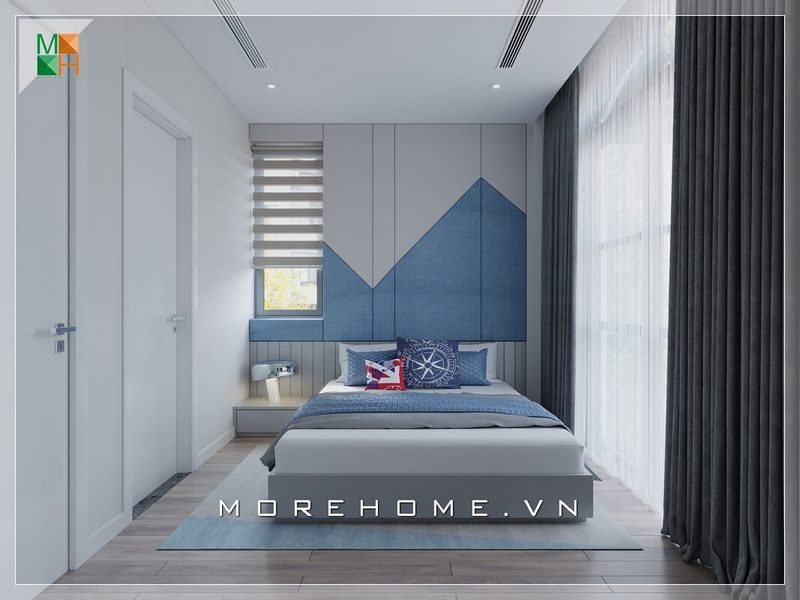 Mẫu thiết kế giường ngủ bé trai hiện đại, kết hợp tab đầu giường đầy tiện nghi và thoải mái nhất
