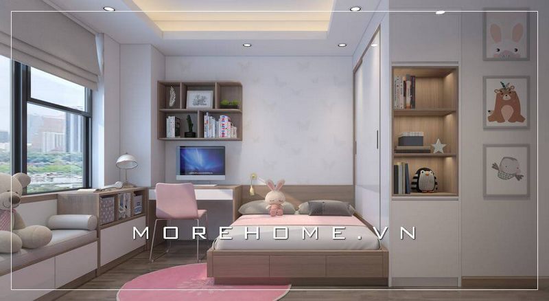 Mẫu thiết kế giường ngủ cho bé kiểu dáng không chân có ngăn kéo bằng gỗ công nghiệp kiểu dáng hiện đại.