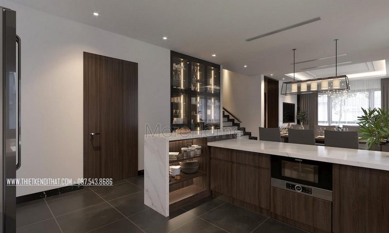 Mẫu cửa gỗ công nghiệp An Cường có phong cách sang trọng và ấn tượng với tone màu nâu đặc trưng, tạo nên một phong cách hiện đại cho nhà phố.