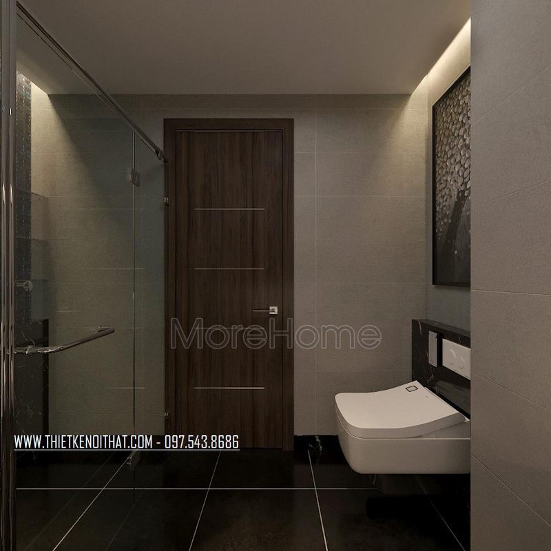 Mẫu cửa thông phòng có họa tiết trang trí được làm bằng gỗ vân tại Chung cư Thăng Long Number One MH08.