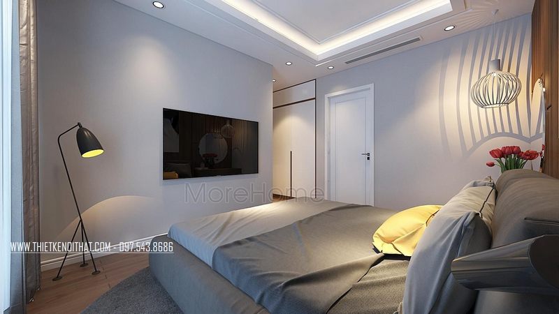 Cửa gỗ màu trắng của công nghiệp giúp tạo nên một không gian tinh tế và đẹp mắt trong phòng ngủ của mọi gia đình.