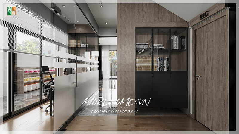 Hành lang phòng làm việc được thiết kế sang trọng với cách bài trí khoa học, gọn gàng giúp tạo nên ấn tượng tốt cho nhân viên và đối tác khi đến tham gia các buổi họp bàn.