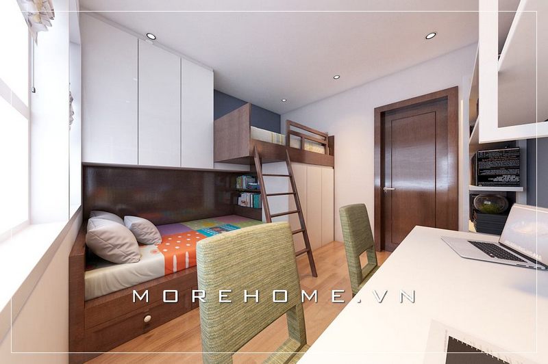 Gia chủ đã chọn chất liệu gỗ công nghiệp để làm nội thất phòng ngủ con trai hiện đại, giúp tạo ra một cảm giác thanh thoát và nhẹ nhàng hơn.
