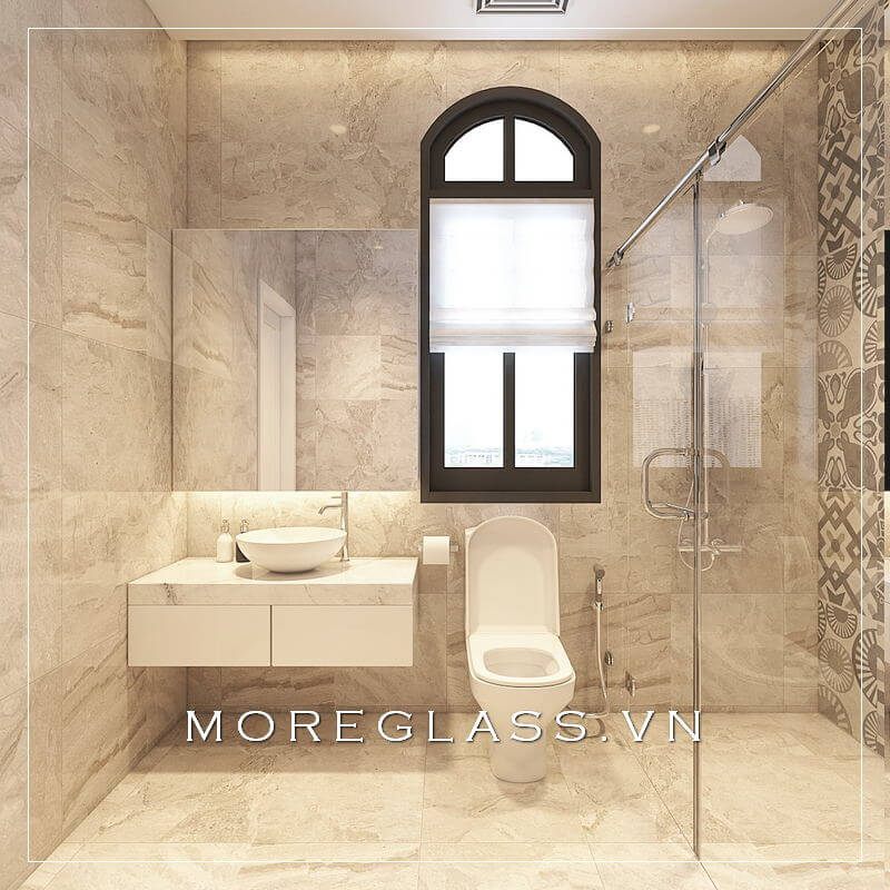 Mẫu thiết kế phòng tắm cao cấp, sang trọng với nội thất, thiết bị vệ sinh hiện đại và tông màu gạch ốp be sáng làm nên một cảnh quan hấp dẫn để cuốn hút mọi ánh nhìn.