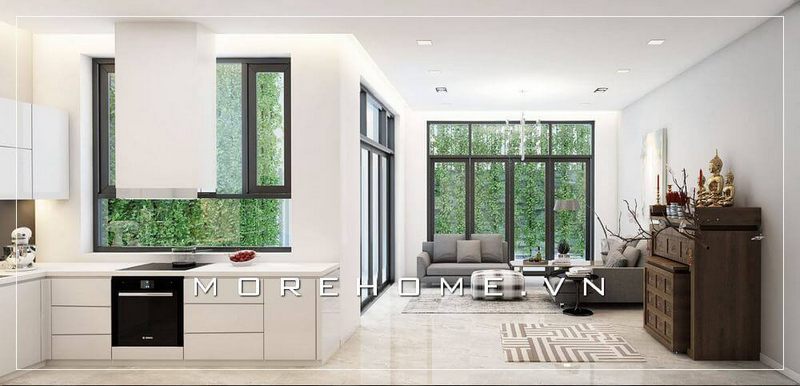 Một trong những điểm nổi bật của phong cách này là việc sử dụng các vật liệu tự nhiên, như gỗ và đá, không chỉ tạo cảm giác gần gũi mà còn mang lại sự sang trọng. Những đường nét thiết kế tối giản, sắc nét kết hợp với gam màu trung tính giúp không gian trở nên thanh thoát và dễ chịu hơn. Bên cạnh đó, ánh sáng tự nhiên được tận dụng tối đa thông qua cửa sổ lớn, không chỉ làm sáng bừng không gian mà còn kết nối con người với thiên nhiên bên ngoài.